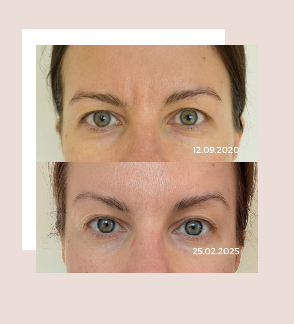 1. etapp: Harjumuste analüüs ja anatoomia – õpid mõistma oma näo ülaosa pingeallikaid. Ainult juurpõhjustele keskendud ilurutiiniga saab tõhusalt neid jooni ennetada ja olemasolevaid siluda nii, et tulemus püsiks ka aastate pärast.
